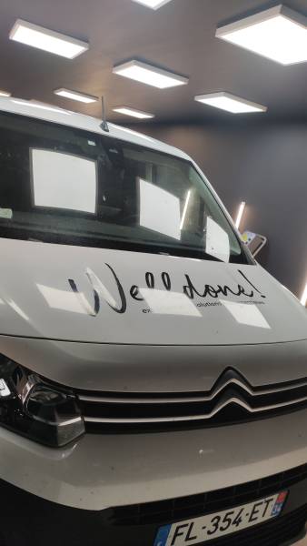 Destickage d'un utilitaire pour une future vente. Un polissage et un lustrage on été effectué pour éliminer les marques des stickers et redonner de la brillance au vernis.