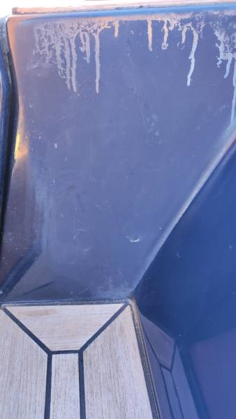 Nous avons tout d'abord nettoyé le bateau puis masqué les parties qui ne serons pas à polir. Nous avons effectué deux passes de polissage pour corriger les défauts du gelcoat après cela nous avons lustrer le gelcoat pour lui redonner de la brillance et enfin nous avons appliqué une cire de protection afin que le gelcoat garde sa brillance.